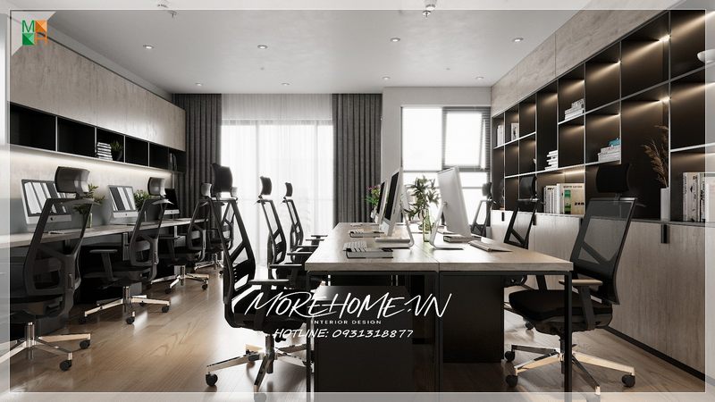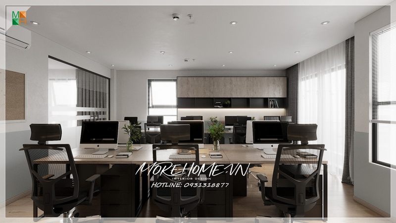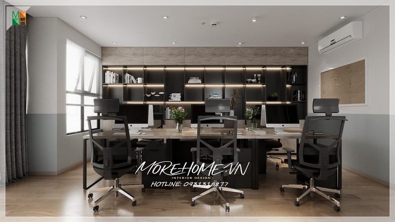 Bàn làm việc bằng gỗ công nghiệp hiện đại với công năng sử dụng cao tối ưu được diện tích mỗi nhân viên được phân chia khoảng không gian làm việc riêng nhưng vẫn đồng thời đảm bảo được sự tương tác nâng cao tính thảo luận và giúp đẩy mạnh hiệu suất công việc