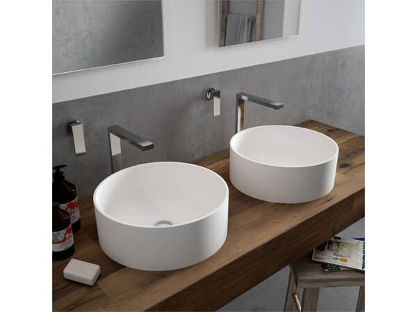 Chậu rửa lavabo nhân tạo màu trắng kiểu dáng hiện đại trẻ trung mang tới không gian năng động thẩm mỹ cao