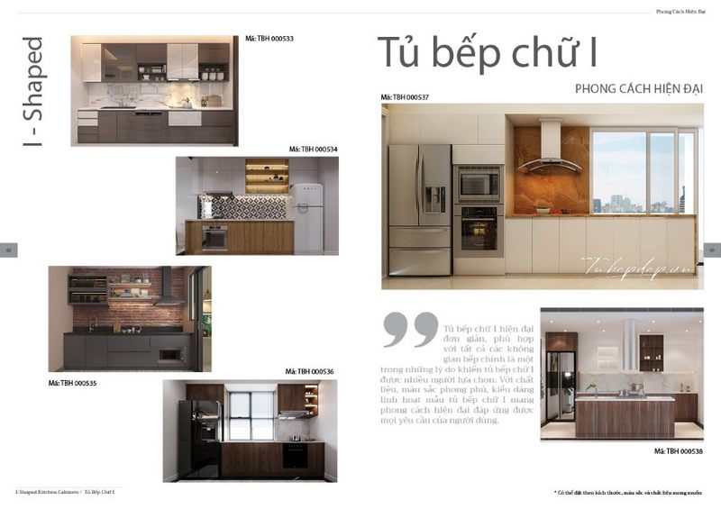 Nhiều mẫu thiết kế tủ bếp hiện đại kiểu chữ i trẻ trung và gọn gàng dành cho các gia chủ lựa chọn trong thời đại số ngày nay