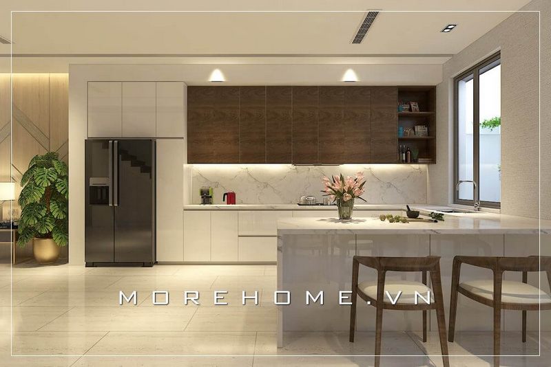 Morehome đã hoàn thành việc thi công hình ảnh tủ bếp hiện đại gỗ công nghiệp tại biệt thự 4 tầng ở Nghệ An.